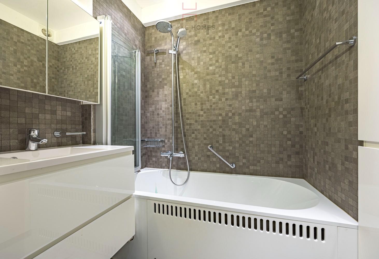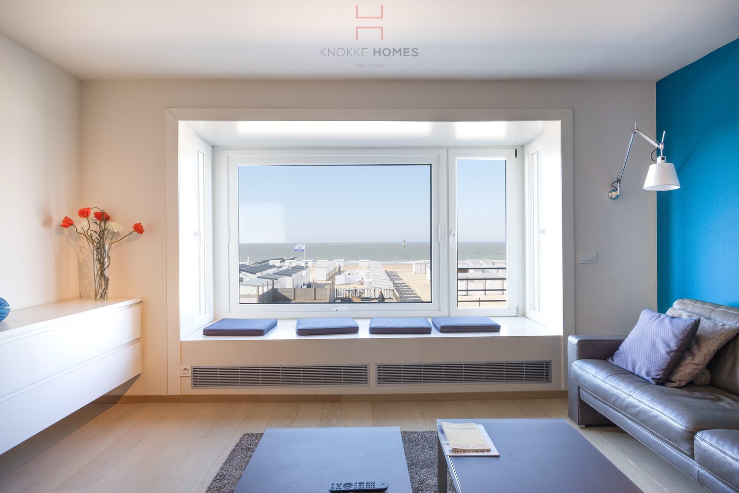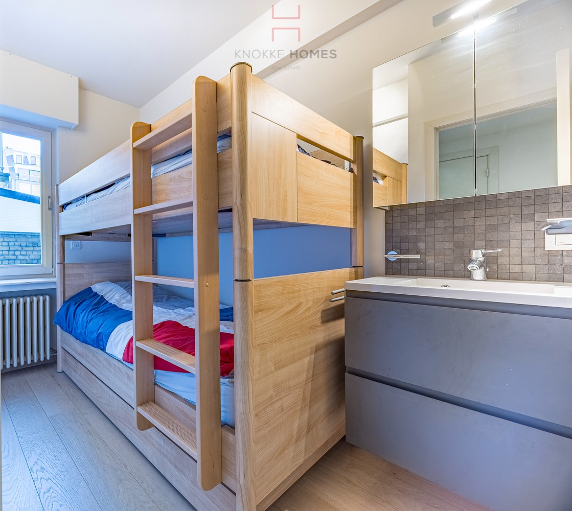 Appartement clé en main avec vue frontale mer, situé près de la place du triangle. Salon spacieux avec placards. Une belle vue mer peut être appréciée depuis la salle de séjour. Cuisine ouverte entièrement équipée avec tout le confort moderne (appareils Miele) et coin repas adjacent. Entrée avec toilettes pour invités. Chambre à coucher principale avec armoires encastrées. Deuxième chambre à coucher avec placards et lavabo. Salle de bains avec lavabo et baignoire avec cabine de douche. Cave privée dans la résidence.