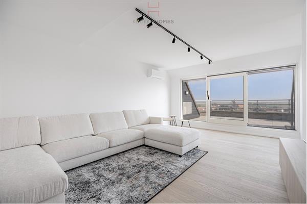 Uitzonderlijk duplex appartement met een combinatie van licht, ruimte en comfort in Duinbergen. Bij binnenkomst wordt u meteen verwelkomd in een lichtrijke woonkamer die toegang biedt tot een prachtig zonneterras met een adembenemend, vrij uitzicht. Aansluitend bevindt zich de elegante eetkamer, grenzend aan een moderne, volledig uitgeruste keuken. Een ruime bijkeuken verhoogt het praktische comfort. Verder vindt u op deze verdieping een hal met garderobe en een gastentoilet. Aan de rustige achterzijde liggen twee stijlvolle slaapkamers, elk voorzien van een en-suite badkamer of douchekamer. De bovenverdieping biedt ruimte aan nog twee slaapkamers, elk uitgerust met een eigen doucheruimte. Het appartement beschikt over veel opbergruimte dankzij op maat gemaakte kasten, afgewerkt met hoogwaardige materialen en een verfijnde afwerking. Extra troeven: een privékelder en de mogelijkheid tot aankoop van een garage vlakbij. Deze gerenoveerde parel straalt luxe en comfort uit in een verfijnde setting. Perfect voor wie op zoek is naar een zonnig, instapklaar appartement op een toplocatie. Info en bezoeken via 050 760 760 | |||||||||||||||||||||||||||||||||||||||||||