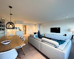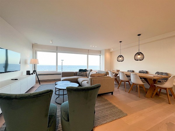 Prachtig gerenoveerd appartement met 3 slaapkamers op de Zeedijk van het Zoute. Dit appartement beschikt over een ruime leefruimte met frontaal zeezicht en een volledig uitgeruste open keuken. Verder is er de eerste slaapkamermet een tweepersoonsbed, een en-suite douchekamer en toegang tot het terras. De tweede slaapkamer beschikt over een tweepersoonsbed en tv. De derde kamer heeft een lollipop-bed. Er is tevens een staanplaats in een nabijgelegen residentie inbegrepen in de huurprijs. | |||||||||